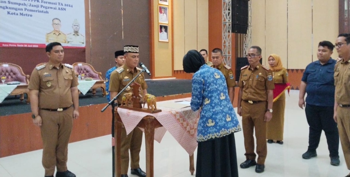 Pemerintah Kota (Pemkot) Metro secara resmi menyerahkan Surat Keputusan (SK) Pengangkatan kepada Pegawai Pemerintah dengan Perjanjian Kerja (PPPK) Formasi Tahun 2024, serta melaksanakan prosesi pengambilan sumpah/janji ASN, Selasa (tanggal sesuai pelaksanaan).