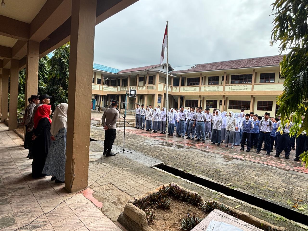Selain itu, Kapolsek juga mengingatkan para siswa agar tidak melakukan *perundungan (bullying)* antar sesama teman, sebab tindakan tersebut dapat menimbulkan dampak psikologis yang serius bagi korban. Ia juga menyoroti bahaya penyalahgunaan zat berbahaya seperti *lem kambing*, yang dapat merusak kesehatan dan masa depan generasi muda.