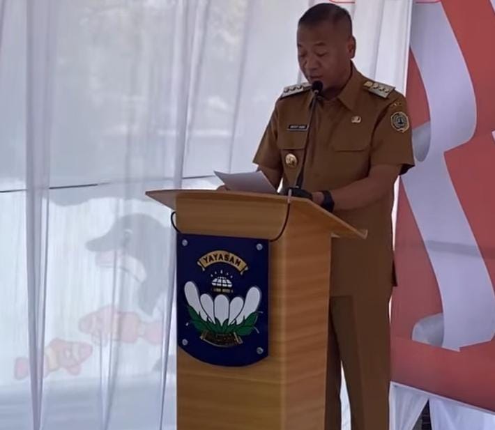 Tulungagung – Bupati Tulungagung Gatut Sunu Wibowo menghadiri acara peletakan batu pertama pembangunan ruang kelas Tathya Dharaka di TK Kemala Bhayangkari 49 Tulungagung, Senin (11/8/2025).