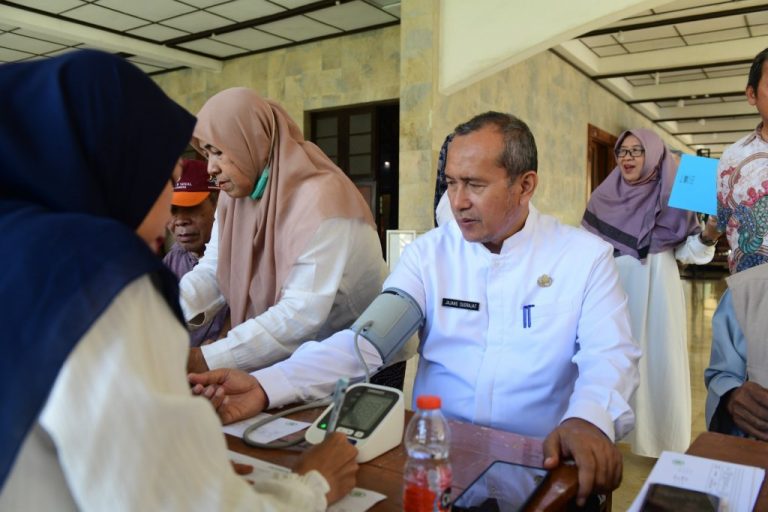Menariknya, kegiatan ini juga diikuti oleh sejumlah pejabat daerah, salah satunya Asisten Daerah (Asda) Pemerintahan dan Kesejahteraan Rakyat, Jajang Sudrajat, yang turut memeriksakan kesehatannya bersama masyarakat.