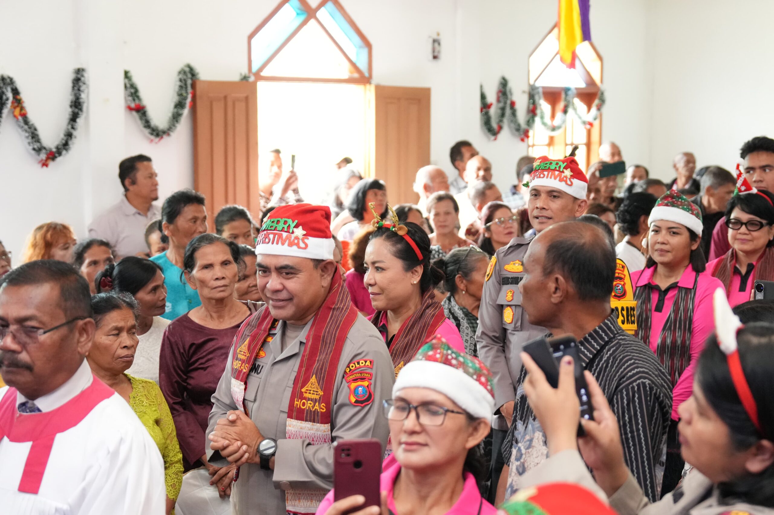 Perayaan Natal tersebut dihadiri langsung Kapolda Sumatera Utara, Irjen Pol Whisnu Hermawan Februanto, bersama Ibu Ketua Bhayangkari Daerah Sumatera Utara, Ny. Mona Whisnu Hermawan, jajaran pejabat utama Polda Sumut, pengurus Bhayangkari, unsur Polres Tapanuli Utara, tokoh gereja, serta masyarakat Adiankoting.