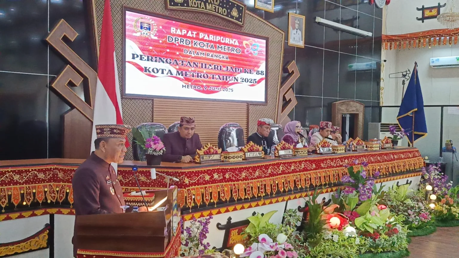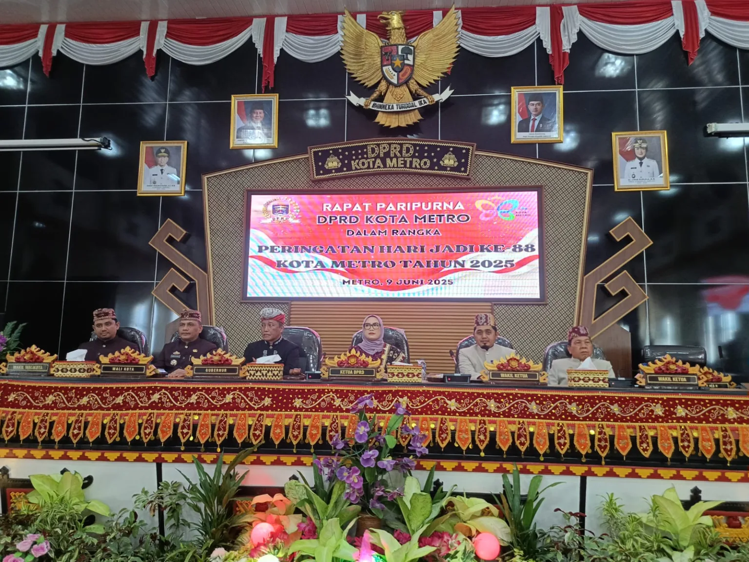 SuaraJurnalis, Lampung (Kota Metro)- Dewan Perwakilan Rakyat Daerah (DPRD) Kota Metro menggelar rapat paripurna dalam rangka peringatan hari jadi ke 88 Kota Metro tahun 2025.