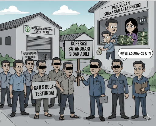 Selain persoalan keterlambatan upah, muncul pula informasi baru terkait Paguyuban Surya Samasta Energy yang diketuai oleh Firman dan Paguyuban Keluarga Utama Jaya yang di ketuai oleh Hermandayani, yang disebut-sebut berperan sebagai penyalur bagi calon karyawan yang ingin bekerja di Koperasi Batanghari Surya Energi (BSE). Berdasarkan keterangan yang diperoleh, paguyuban tersebut diduga melakukan pungutan uang kepada calon karyawan dengan nominal bervariasi antara Rp.2,5 juta hingga Rp.20 juta per orang.