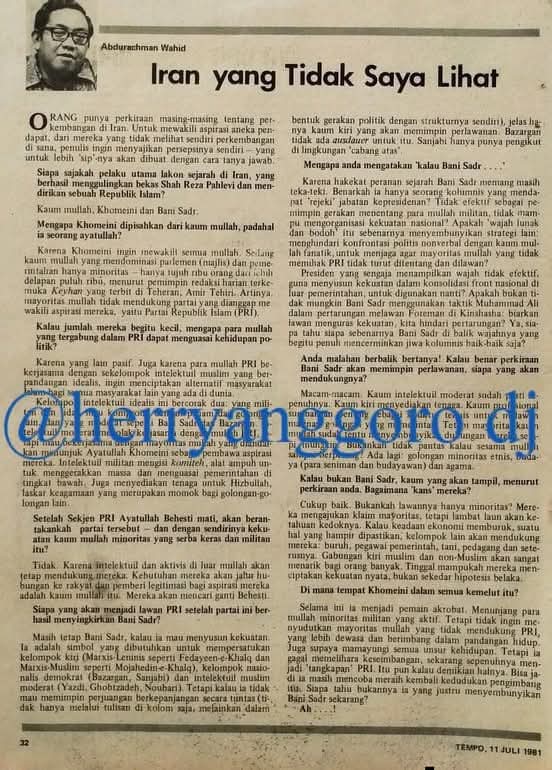 Iran, Empat Puluh Lima Tahun Yang Lalu, Menurut Gus Dur