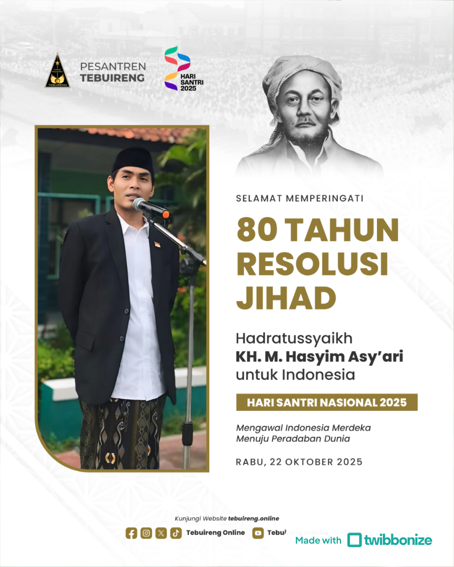 Dua hari yang lalu kita baru saja memperingati Hari Santri Nasional 22 Oktober 2025. Peringatan Hari Santri Nasional ini ditetapkan secara resmi oleh Pemerintah sejak 2015, yang dimaksudkan untuk mengingat dan meneladani semangat jihad para kiai dan kaum santri dalam merebut serta mempertahankan kemerdekaan Indonesia. Tanggal 22 Oktober dipilih sebagai Hari Santri Nasional karena merujuk pada satu peristiwa penting dan bersejarah, yakni seruan “Fatwa Resolusi Jihad” yang dikobarkan oleh Rois Akbar Nahdlatul Ulama, Hadhratus Syaikh KH. M. Hasyim Asy’ari, bersama para kiai berpengaruh lainnya dari seantero Jawa dan Madura pada 22 Oktober 1945. Seruan ini berisi perintah kepada umat Islam untuk berperang melawan pasukan Sekutu yang ingin menjajah kembali wilayah Indonesia pasca-proklamasi kemerdekaan, sehingga meletuslah perang di Surabaya pada 10 November 1945, yang kini dikenal sebagi Hari Pahlawan.
