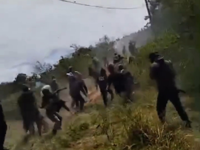 Namun, bukannya mendapat jawaban, massa justru berhadapan dengan aparat keamanan. Situasi semakin panas, hingga terjadi lemparan batu dari arah massa. Aparat pun membalas dengan tembakan gas air mata untuk membubarkan kerumunan.
