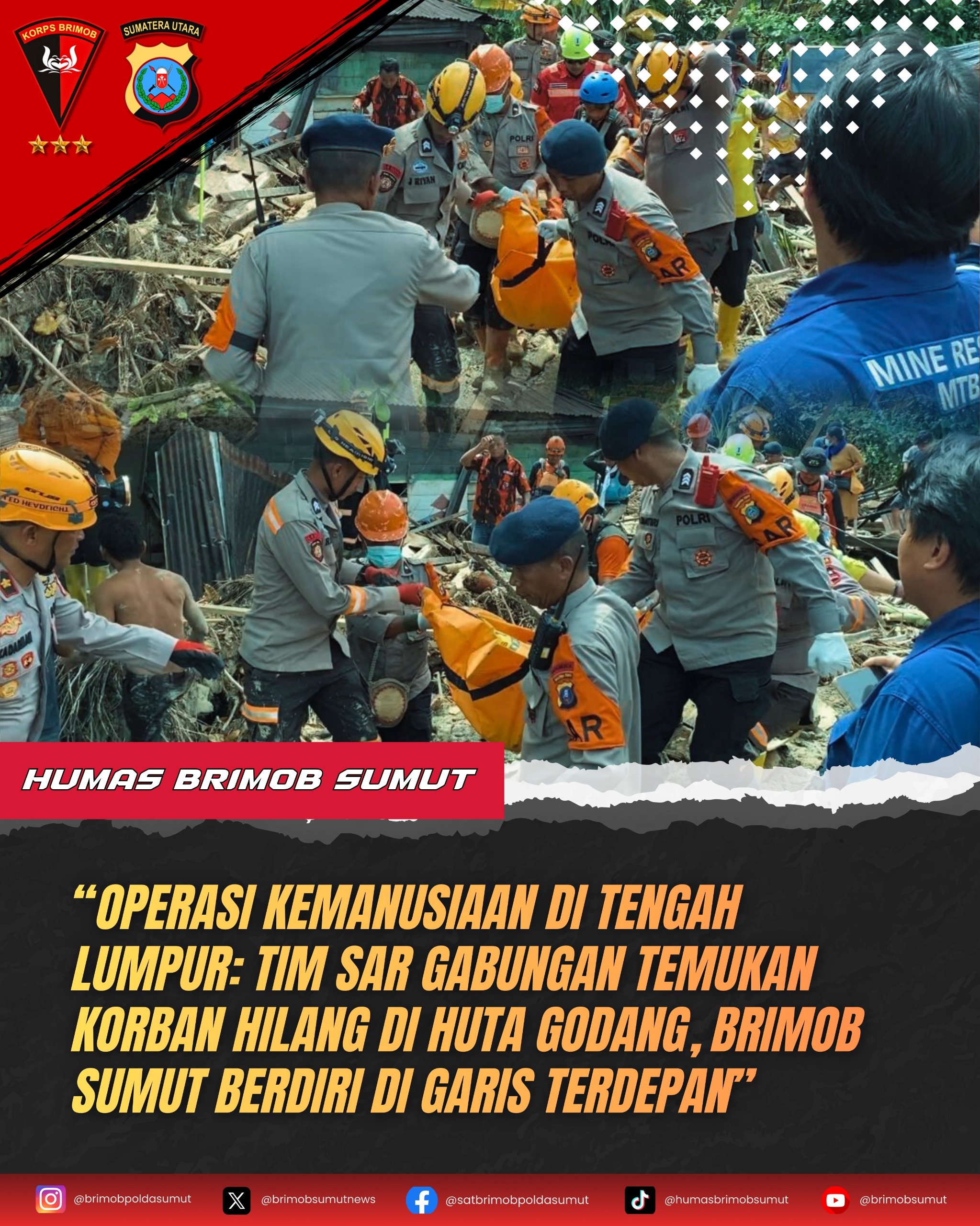 Operasi Kemanusiaan di Tengah Lumpur: Tim SAR Gabungan Temukan Korban Hilang di Huta Godang, Brimob Sumut Berdiri di Garis Terdepan