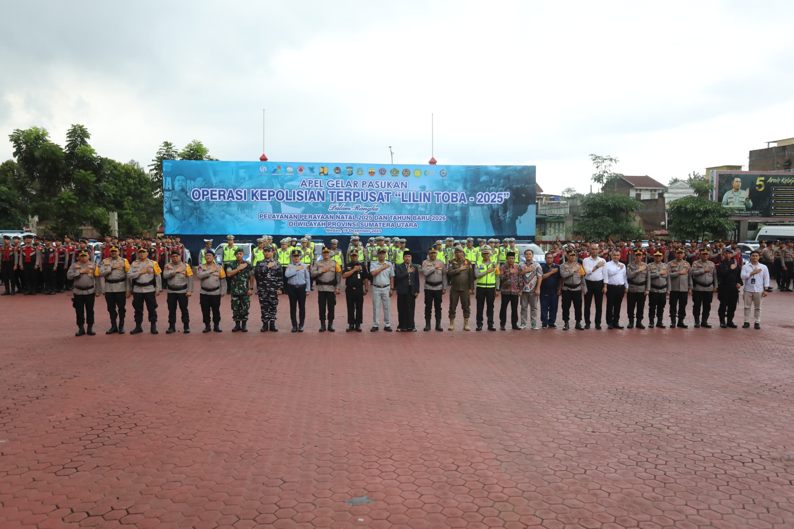 Medansuarajurnalis:Kepolisian Daerah Sumatera Utara (Polda Sumut) menggelar Apel Gelar Pasukan Operasi Lilin Toba 2025 di Lapangan KS Tubun Polda Sumut, Jumat (19/12/2025) pukul 16.00 WIB. Apel ini dilaksanakan sebagai pengecekan akhir kesiapan personel dan sarana prasarana pengamanan Natal 2025 dan Tahun Baru 2026 (Nataru).