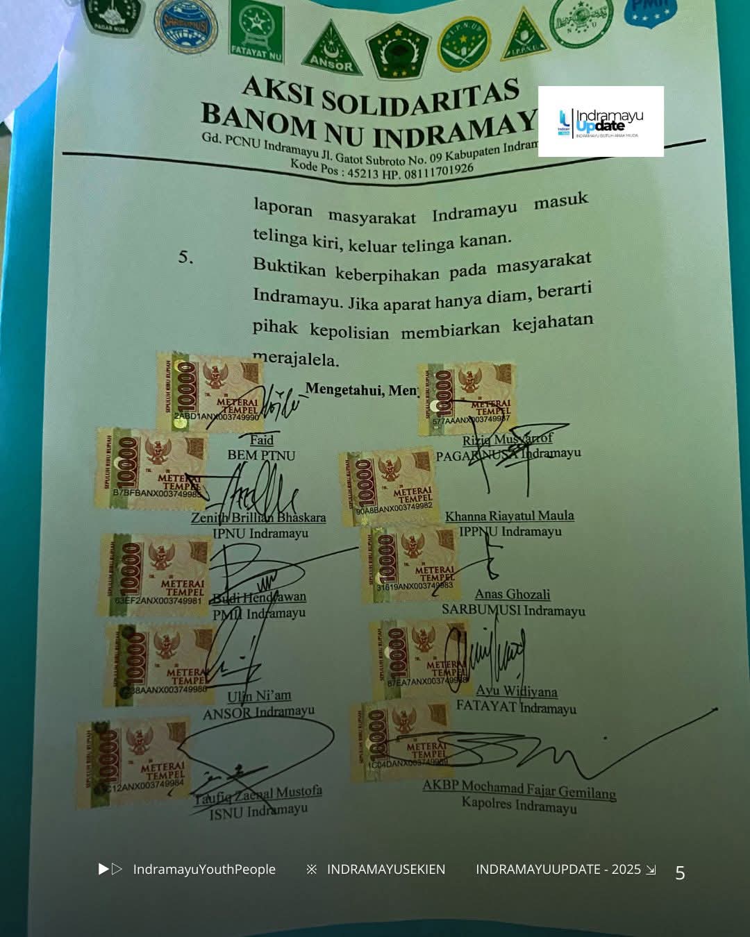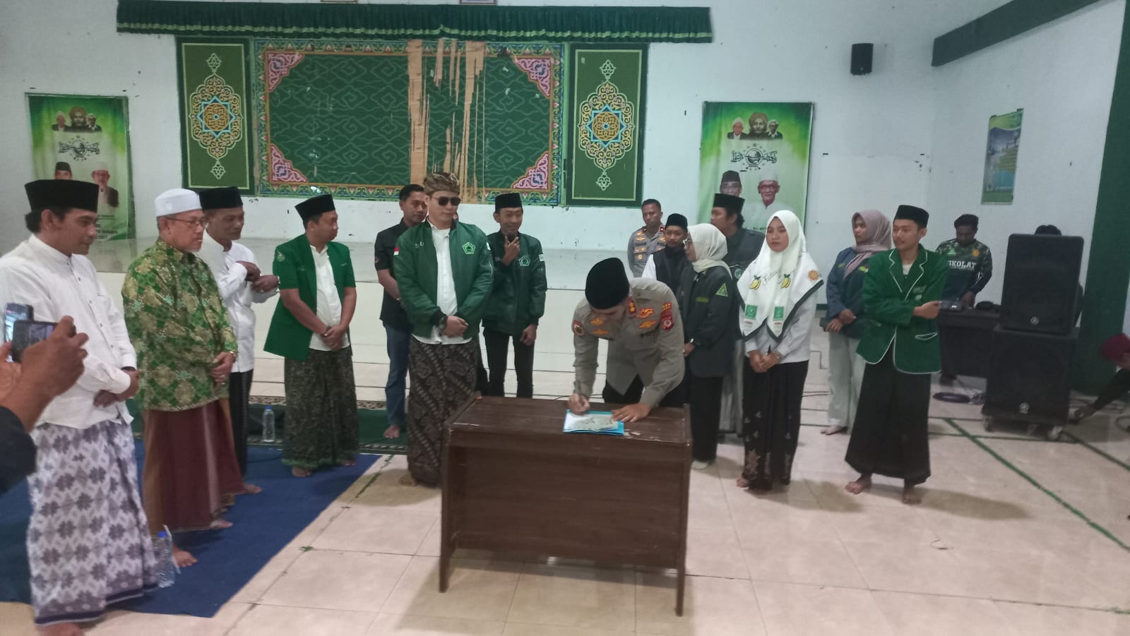 Acara diakhiri dengan pembacaan dan penandatanganan tuntutan dari aliansi Banom NU Indramayu dan disetujui oleh Kapolres Indramayu.