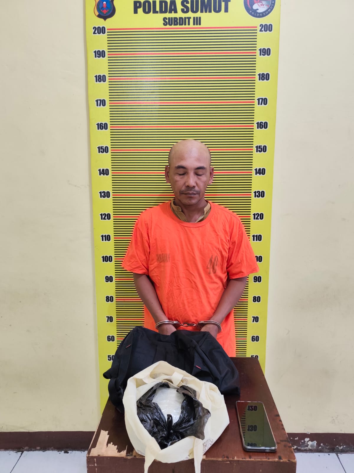 MedanSuaraJurnalis:Direktorat Reserse Narkoba Polda Sumatera Utara kembali menyatakan komitmennya dalam upaya pemberantasan peredaran narkotika di wilayah hukumnya. Seorang pria berinisial HG (46), warga Medan Marelan, berhasil diamankan dengan barang bukti 1 kilogram sabu yang rencananya akan dikirim ke Pekanbaru, Riau.