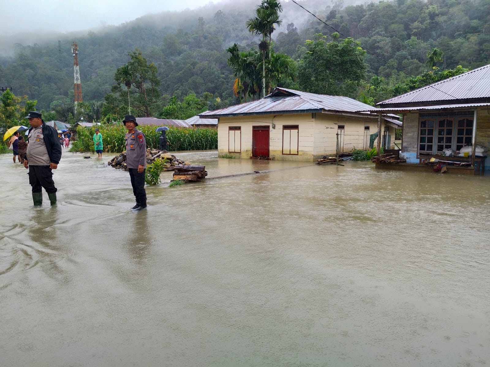 Curah hujan tinggi sejak pagi membuat Sungai Aek Mahassan meluap hingga merendam sekitar 60 rumah warga, sementara dua titik longsor di Desa Robean menimpa dua unit rumah dan menyebabkan satu keluarga mengalami luka-luka.