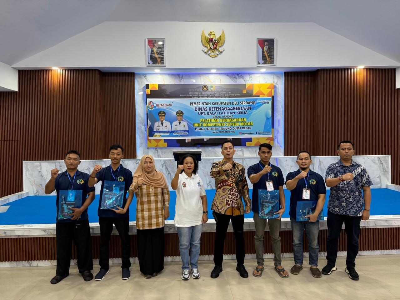 MedanSuaraJurnalis:Rumah Tahanan (Rutan) Kelas I Medan kembali menunjukkan komitmennya dalam membekali warga binaan dengan keterampilan yang berguna setelah bebas. Kali ini, Rutan Kelas I Medan bekerja sama dengan Dinas Ketenagakerjaan Kabupaten Deli Serdang menyelenggarakan Pelatihan Keterampilan Montir Sepeda Motor yang resmi dibuka pada. Jumat (10/10) di Aula Sahardjo Rutan.