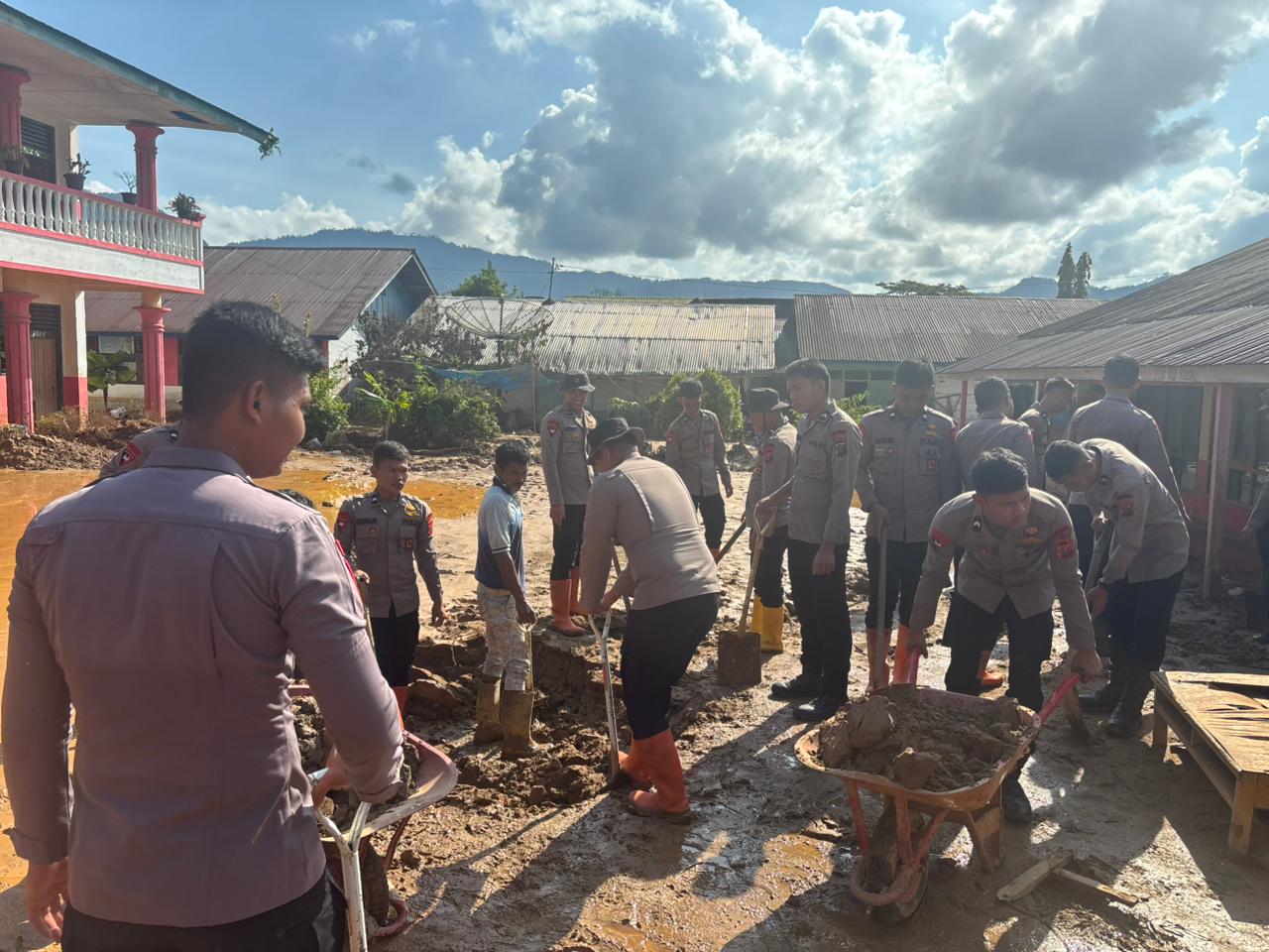 Kabid Humas Polda Sumut, Kombes Pol Ferry Walintukan, menyampaikan bahwa kehadiran Brimob bersama elemen masyarakat merupakan bagian dari komitmen Polri dalam membantu percepatan pemulihan pasca bencana.