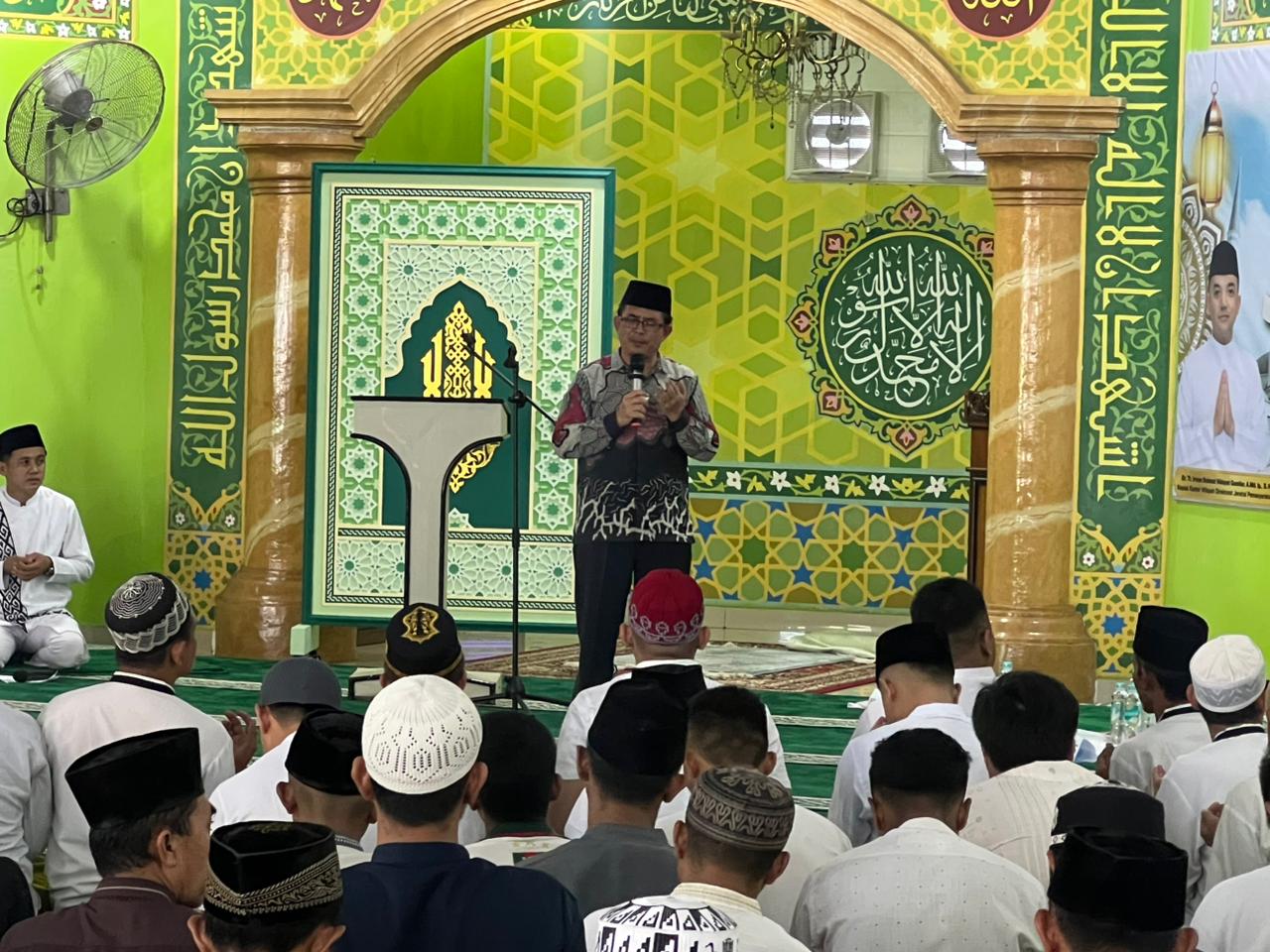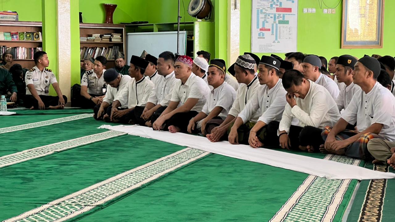 Dalam kegiatan tersebut, hadir Ustadz Prof. Dr. Supian Ramli, S.Ag., M.Ag. sebagai penceramah utama yang menyampaikan tausiah keagamaan kepada seluruh jamaah. Dalam ceramahnya, ia menekankan pentingnya memperkuat nilai-nilai spiritual sebagai bekal dalam menjalani kehidupan, khususnya bagi warga binaan yang tengah menjalani masa pembinaan.