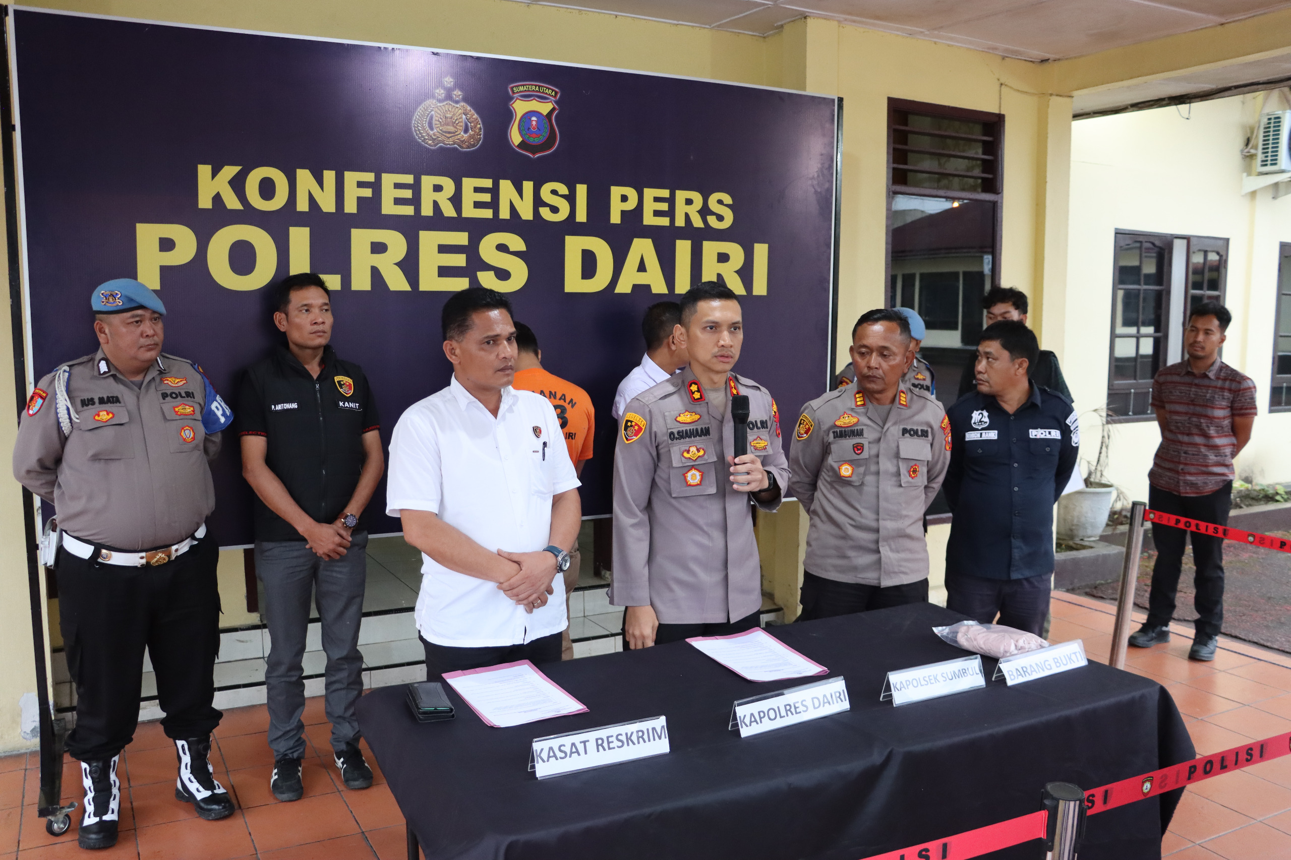 Kapolres Dairi, AKBP Otniel Siahaan, S.I.K., M.I.K dalam konferensi pers mengatakan, tersangka yang diamankan berinisial DL (22) warga Desa Pengambatan Kecamatan Merek Kabupaten Tanah Karo.