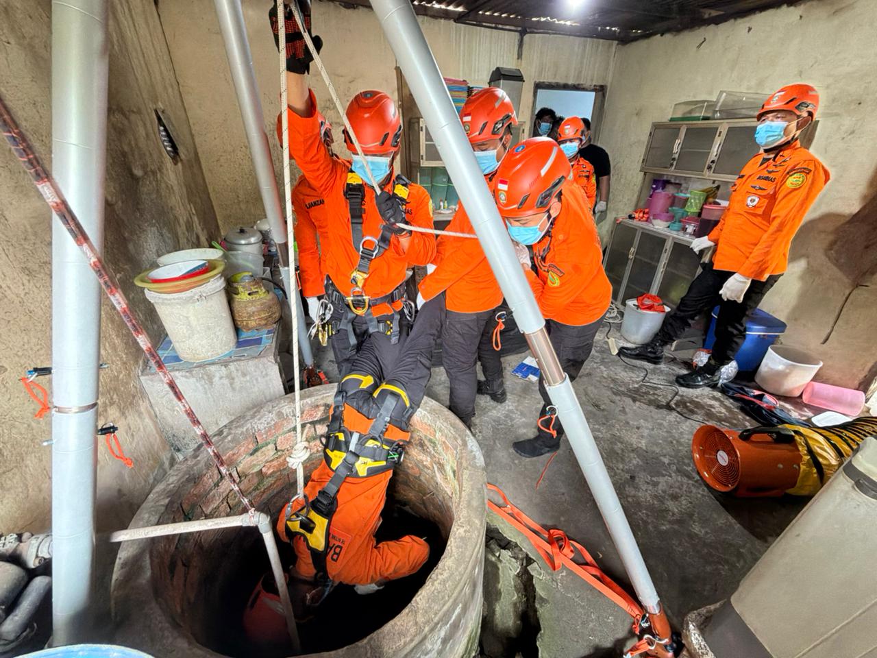 Proses evakuasi yang menggunakan peralatan mountaineering dan Confined Space Rescue (CSR) berlangsung sekitar 12 menit korban berhasil diangkat ke permukaan