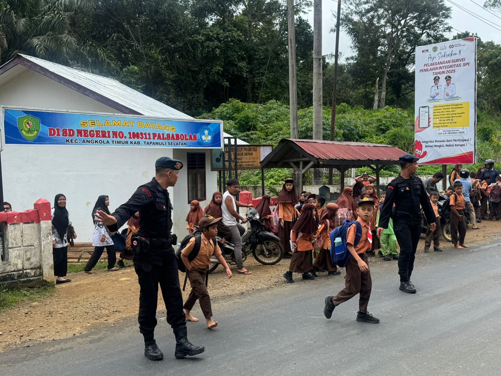 Wujud Kepedulian Polri! Brimob Polda Sumut Antar Jemput Anak Sekolah di Tapanuli Selatan